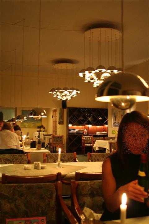 しかし、食事を始めたところで、とてもビックリしたのは、このレストランの照明。そう、あのPanton Lamp(しかも銀メッキ)をつかったシャンデリアだったのだ。一度、雑誌で見たことがあるが、未だに現役で使われている光景をまさか目に出来るとは! 70年代にリノベーションして、そのままなのでしょう。タイムスリップした気分となるレストランは、非常に満足でした。